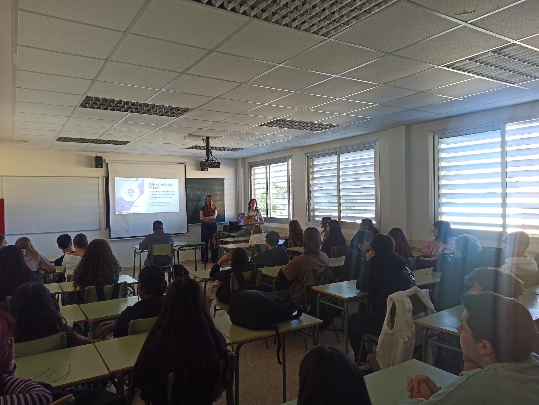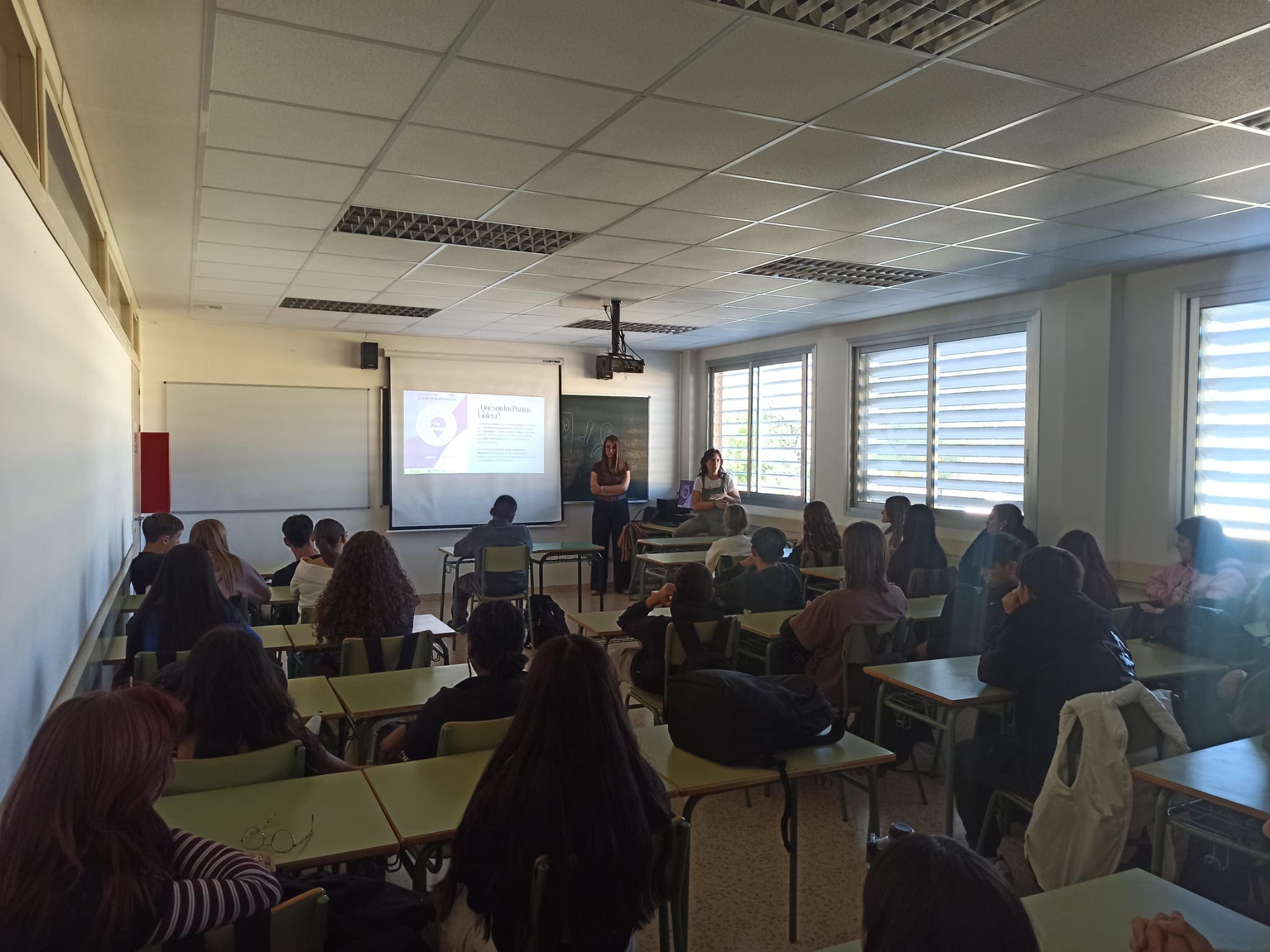 En la charla de 2º de bachillerato, María, explicó que estos puntos también pueden servir como referencia a los hombres para denunciar cualquier tipo de agresión o violencia sexual.
