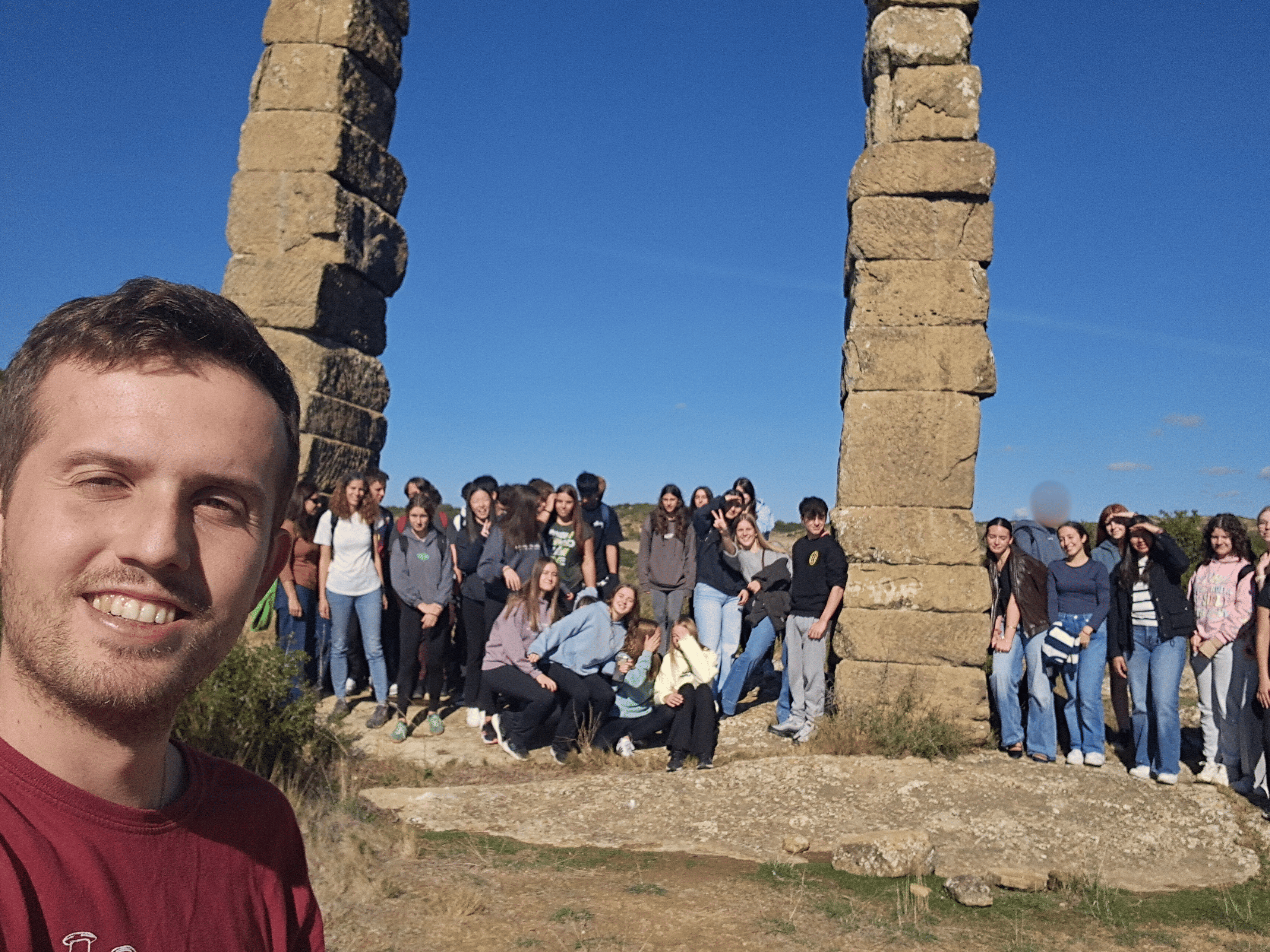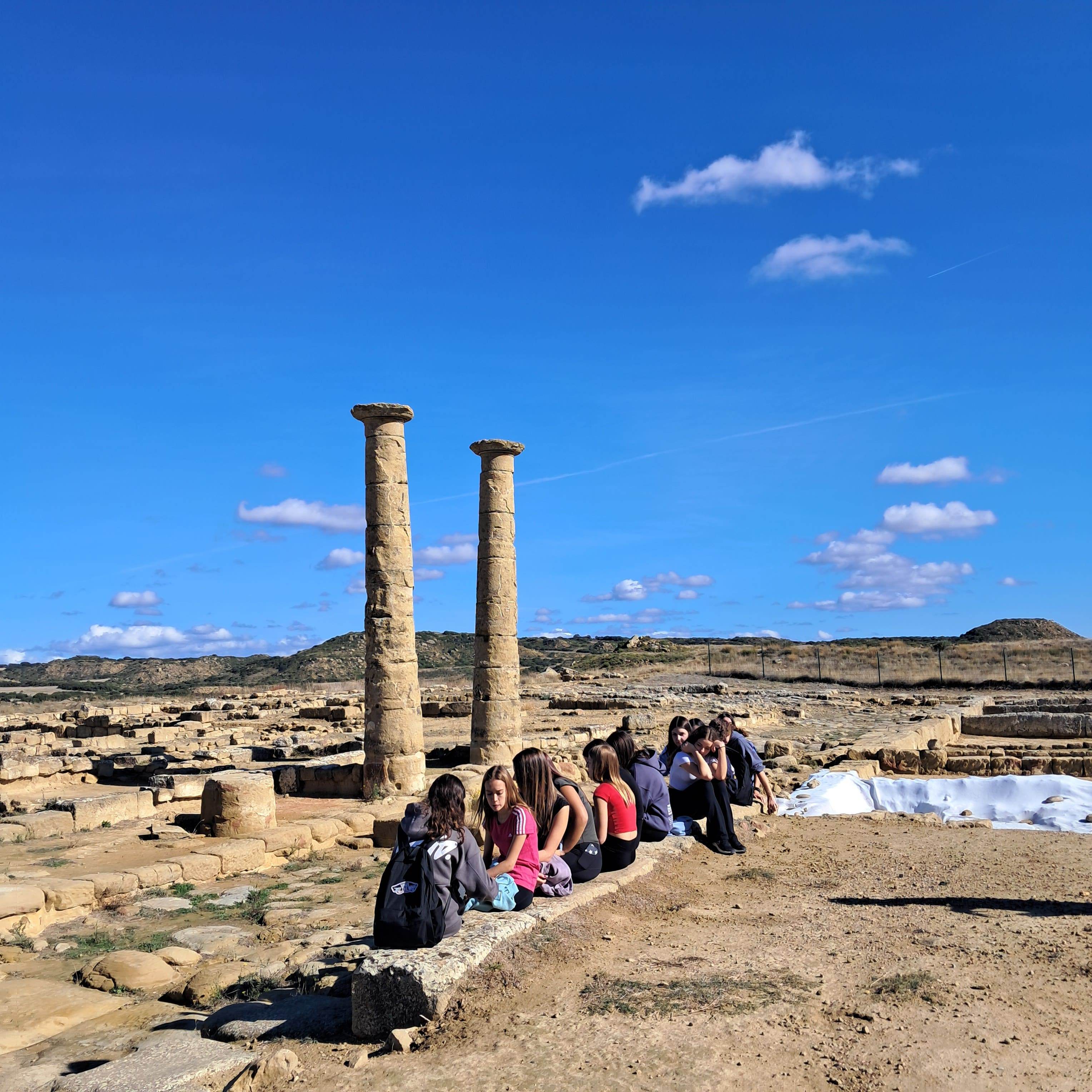 En primer lugar, visitamos el museo de interpretación de Layana, donde pudimos ver la historia del yacimiento, junto a restos hallados allí, como por ejemplo partes de estatuas y de vajillas, cerámica, inscripciones en latín y otras cosas curiosas como una inscripción en árabe del comienzo del Corán, escrito en un hueso de vaca. De ahí nos dirigimos al yacimiento, donde pudimos ver lo que quedaba del foro, las termas y parte del acueducto. Por último, fuimos a una antigua vivienda donde había dos arqueólogas restaurando parte de los muros.