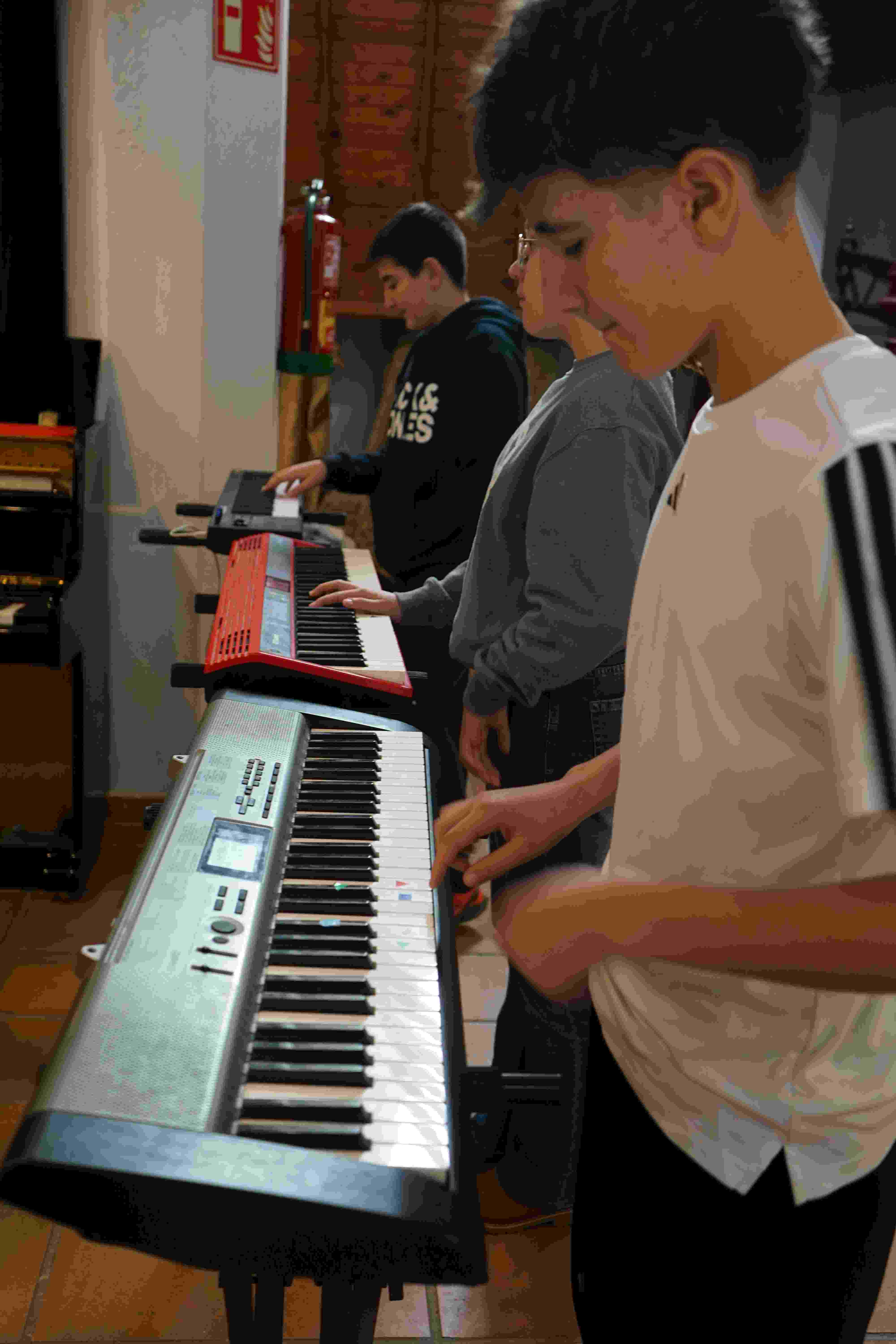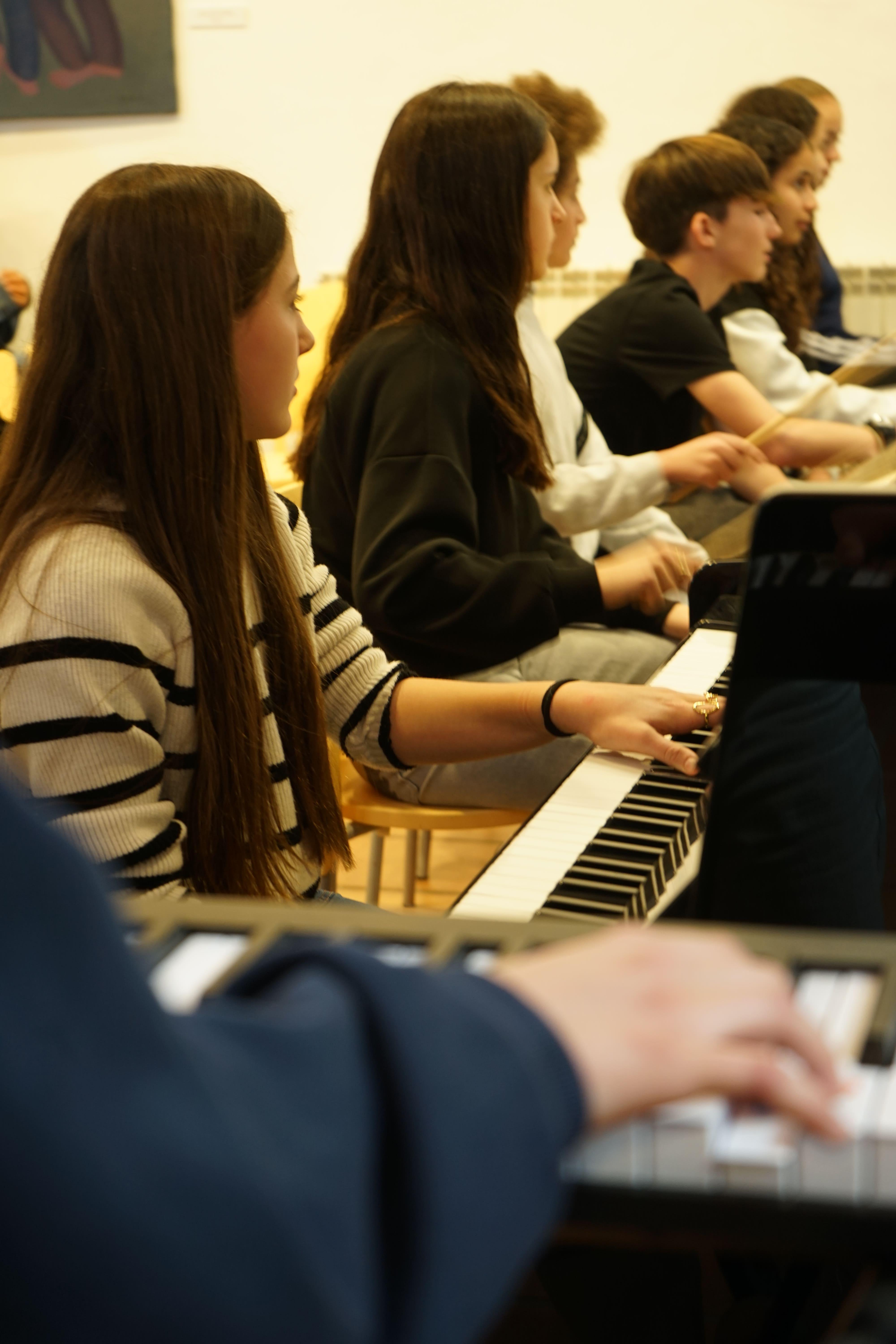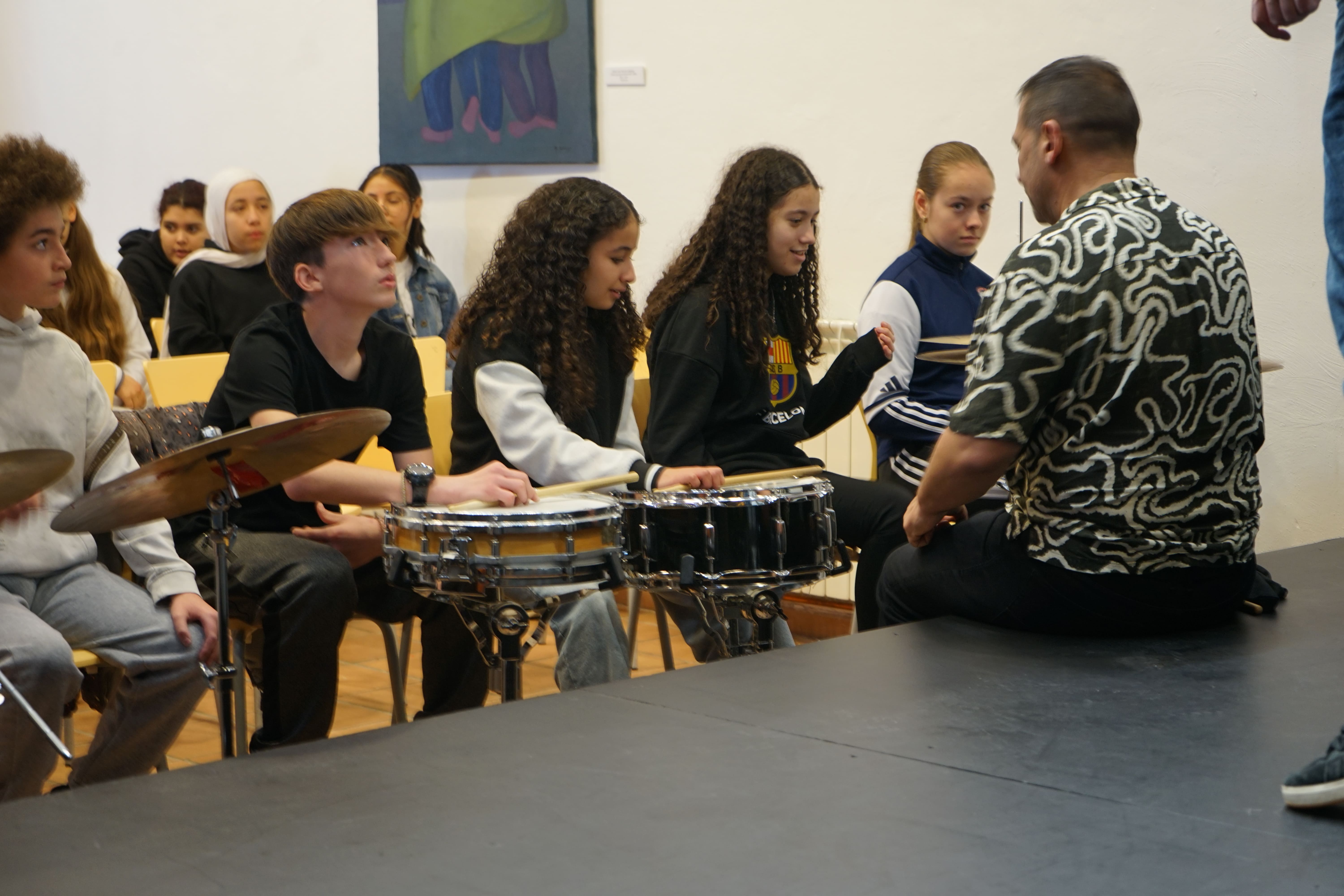 El pasado viernes 27 de febrero, nuestro alumnado de 1º ESO tuvo la oportunidad de asistir a una sesión de jazz en directo. En ella no solo aprendieron la historia del jazz y sus variantes (dixie, blues, lindy hop, swing..) sino que también tuvieron la oportunidad de interpretar un tema. A ritmo de jazz, pudieron tocar la caja, el charles y el teclado.